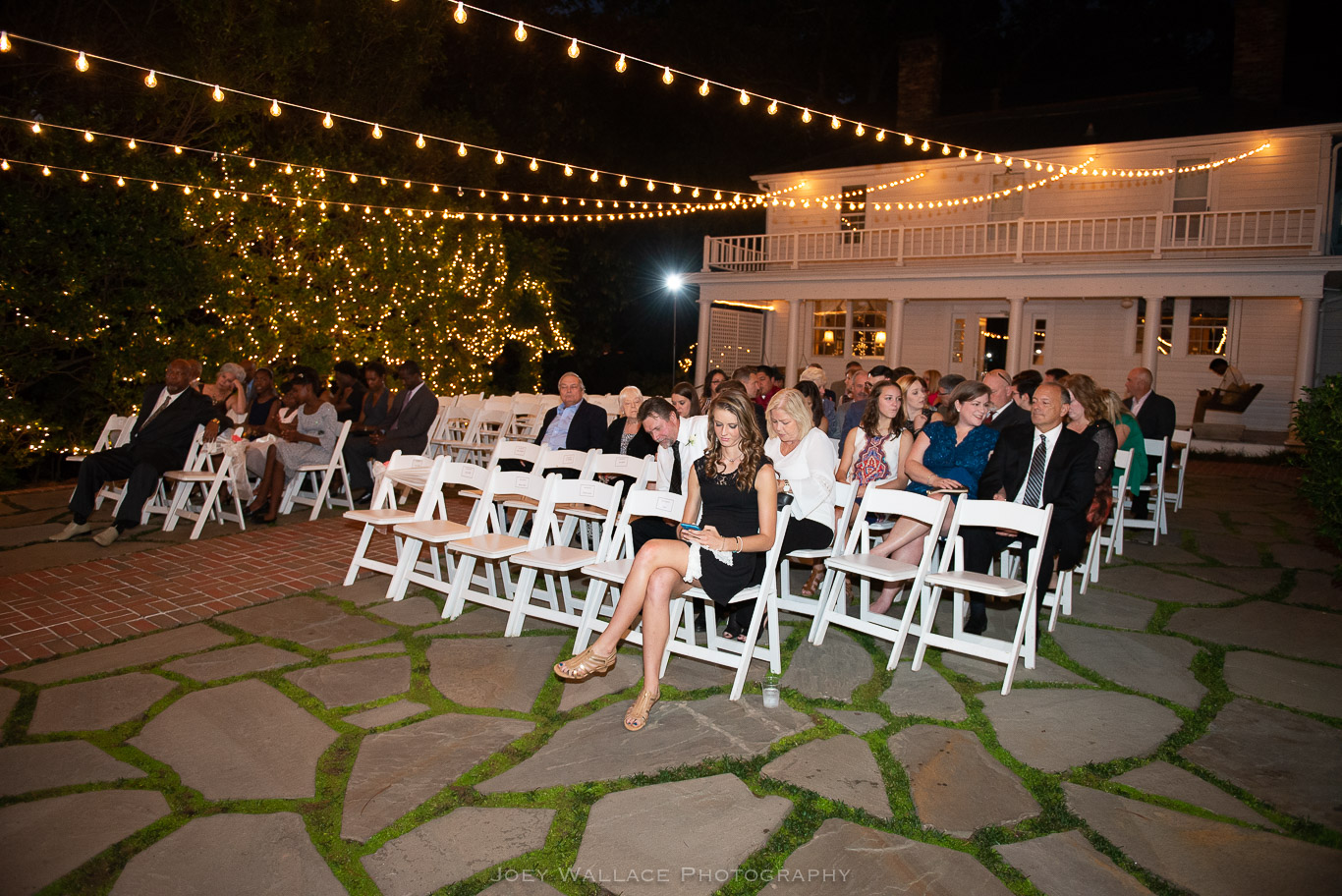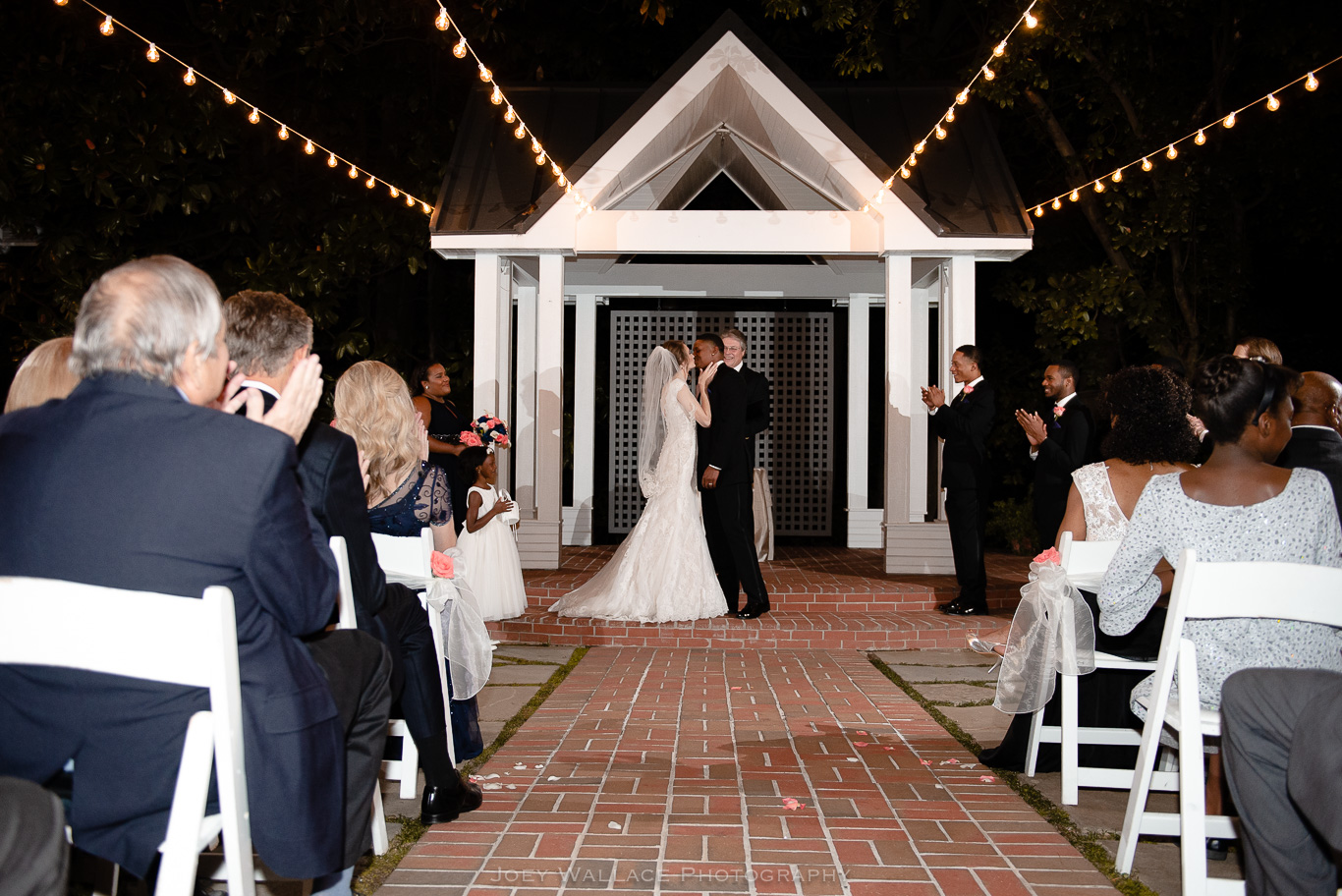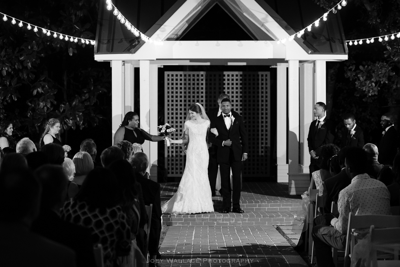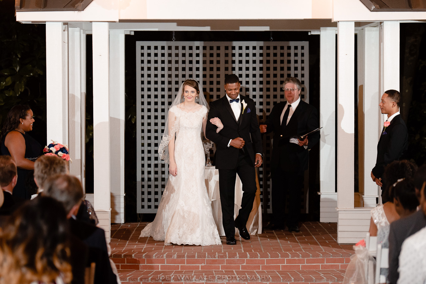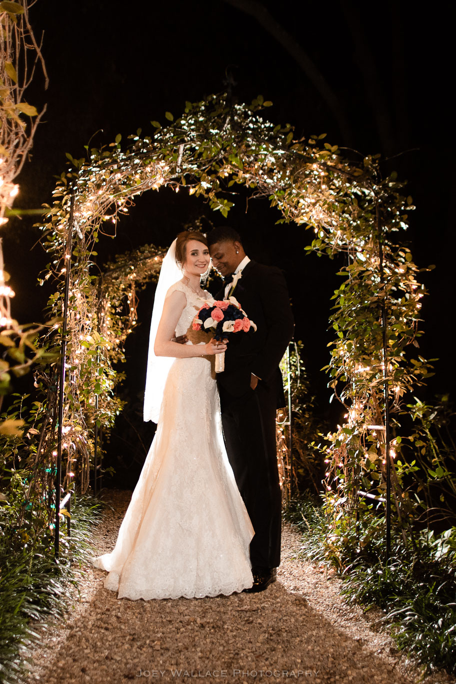 The couple arrived at the vintage house late in the afternoon, shortly after that they began to get ready for their night ceremony at the Flint Hill. The bridal party shared laughter, drinks, and chicken nuggets before they got into their formal dresses and were ushered down the aisle as our Atlanta Wedding Photographers were prepared to flawlessly capture the interracial wedding, despite the venue’s intimate dark setting, thanks to our advanced wireless lighting system.