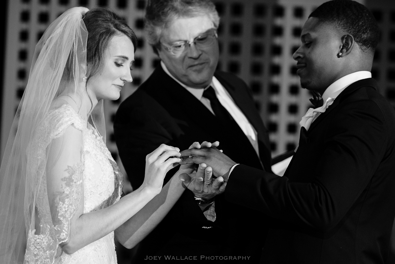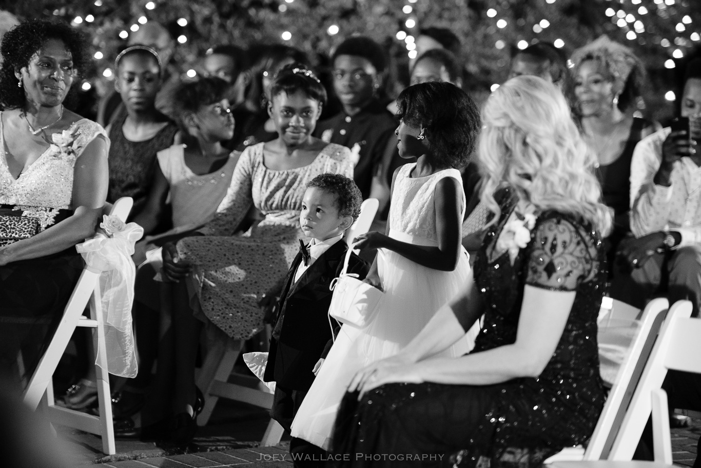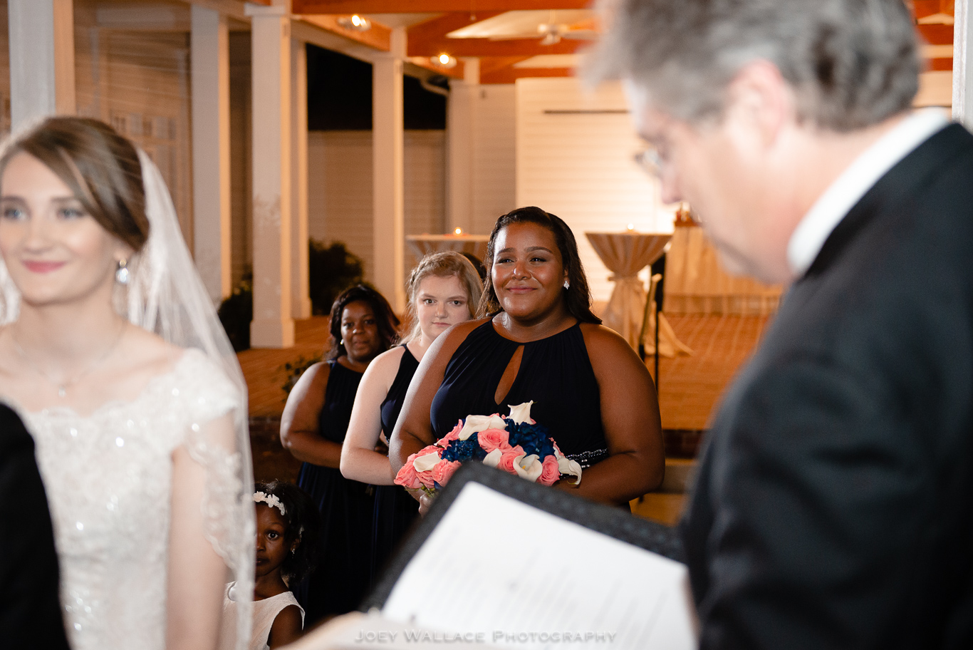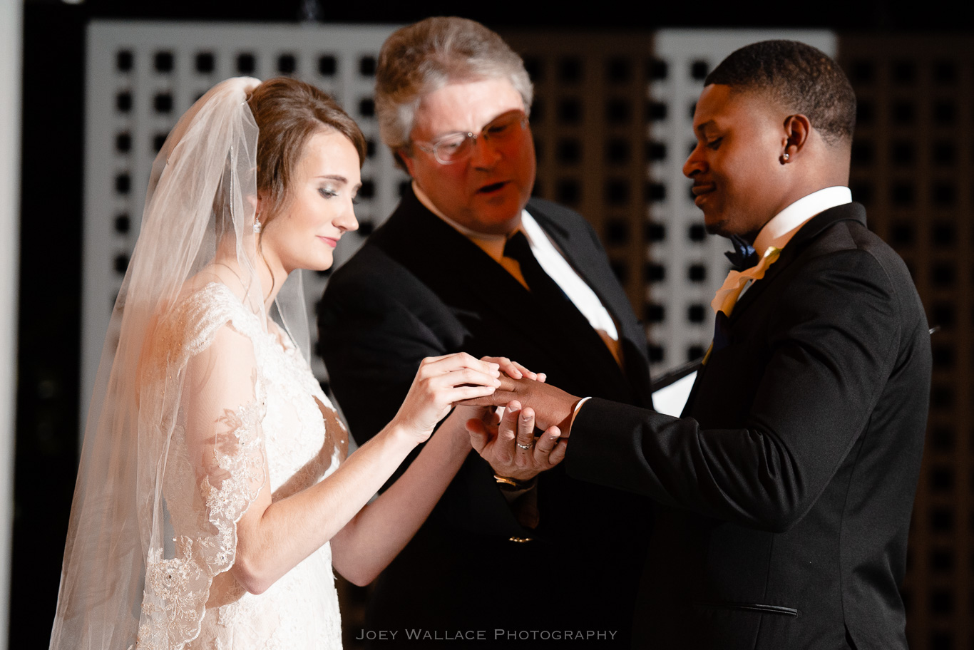 The couple arrived at the vintage house late in the afternoon, shortly after that they began to get ready for their night ceremony at the Flint Hill. The bridal party shared laughter, drinks, and chicken nuggets before they got into their formal dresses and were ushered down the aisle as our Atlanta Wedding Photographers were prepared to flawlessly capture the interracial wedding, despite the venue’s intimate dark setting, thanks to our advanced wireless lighting system.