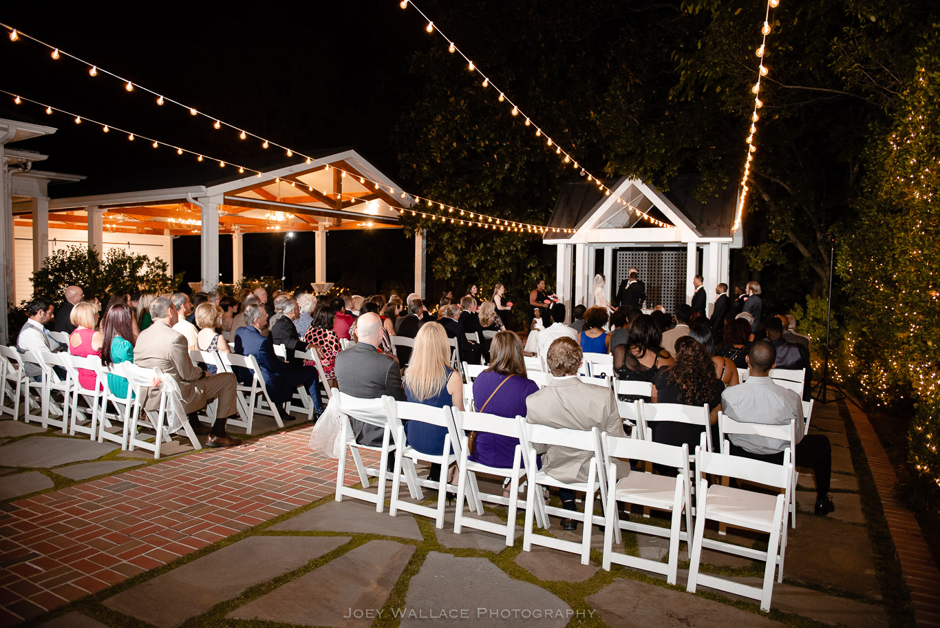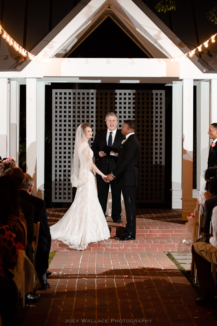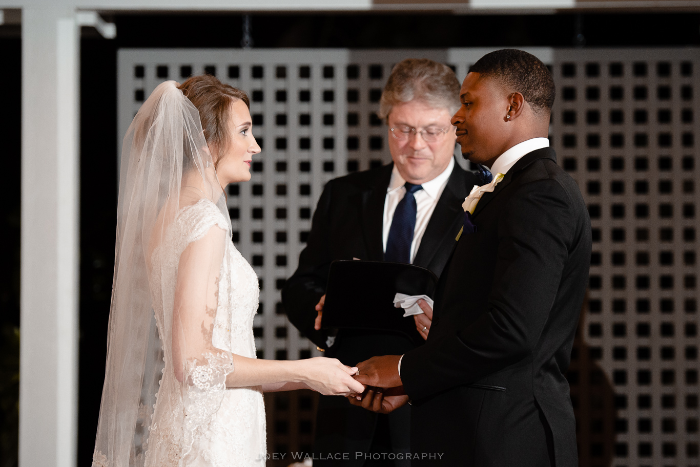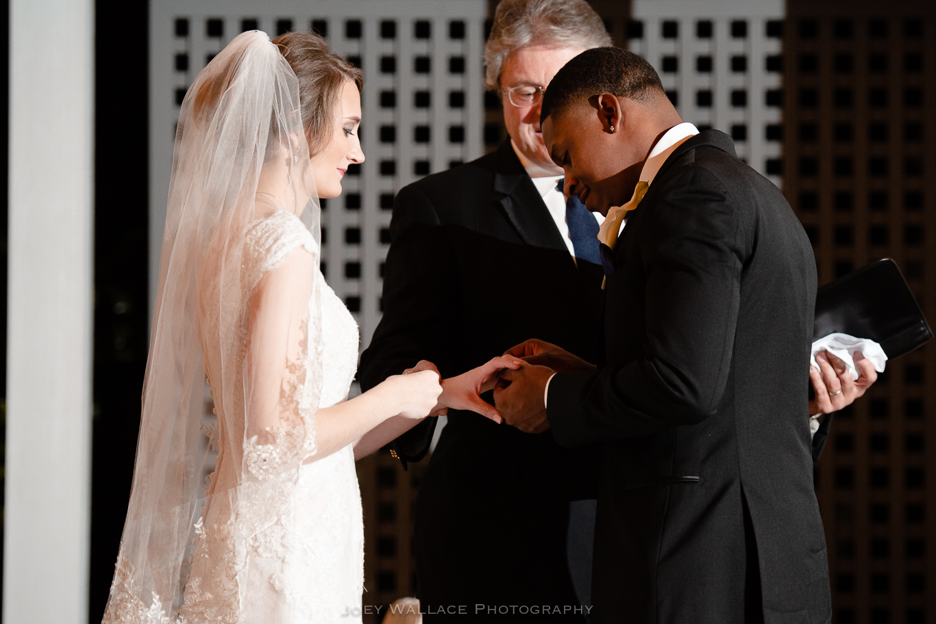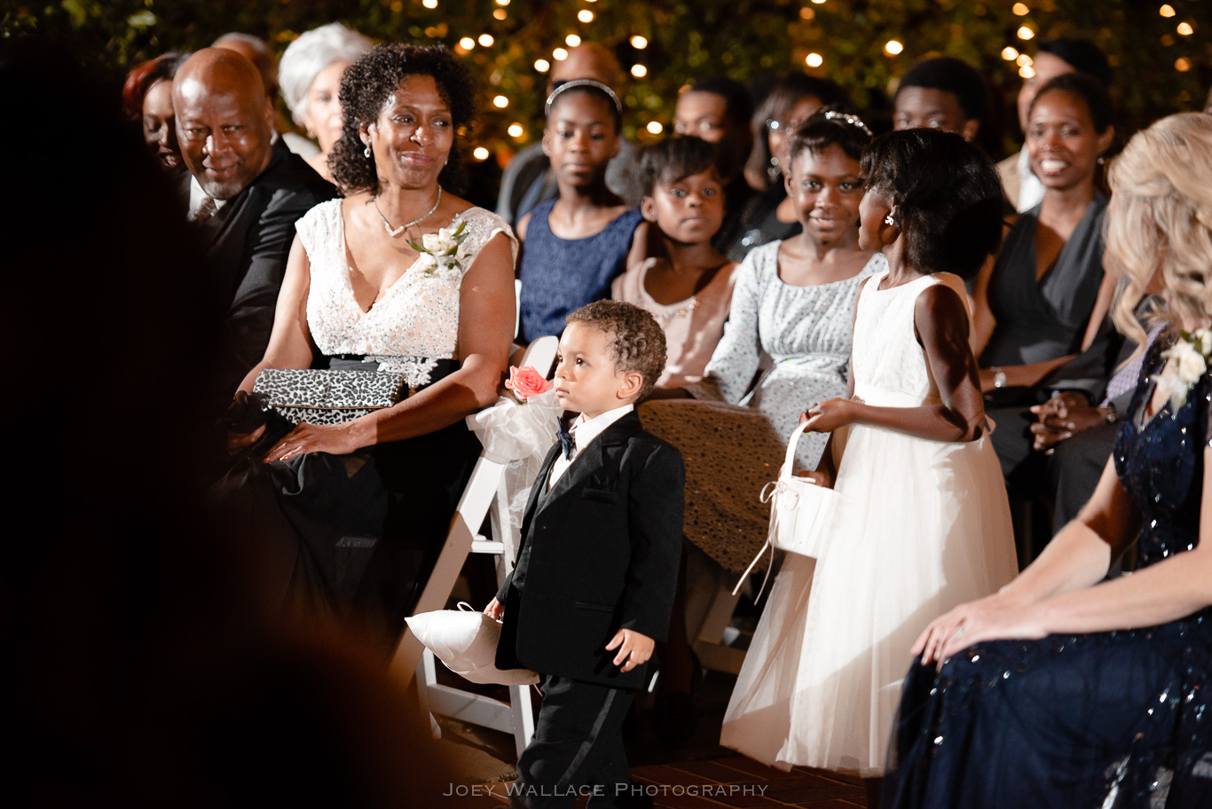 The couple arrived at the vintage house late in the afternoon, shortly after that they began to get ready for their night ceremony at the Flint Hill. The bridal party shared laughter, drinks, and chicken nuggets before they got into their formal dresses and were ushered down the aisle as our Atlanta Wedding Photographers were prepared to flawlessly capture the interracial wedding, despite the venue’s intimate dark setting, thanks to our advanced wireless lighting system.