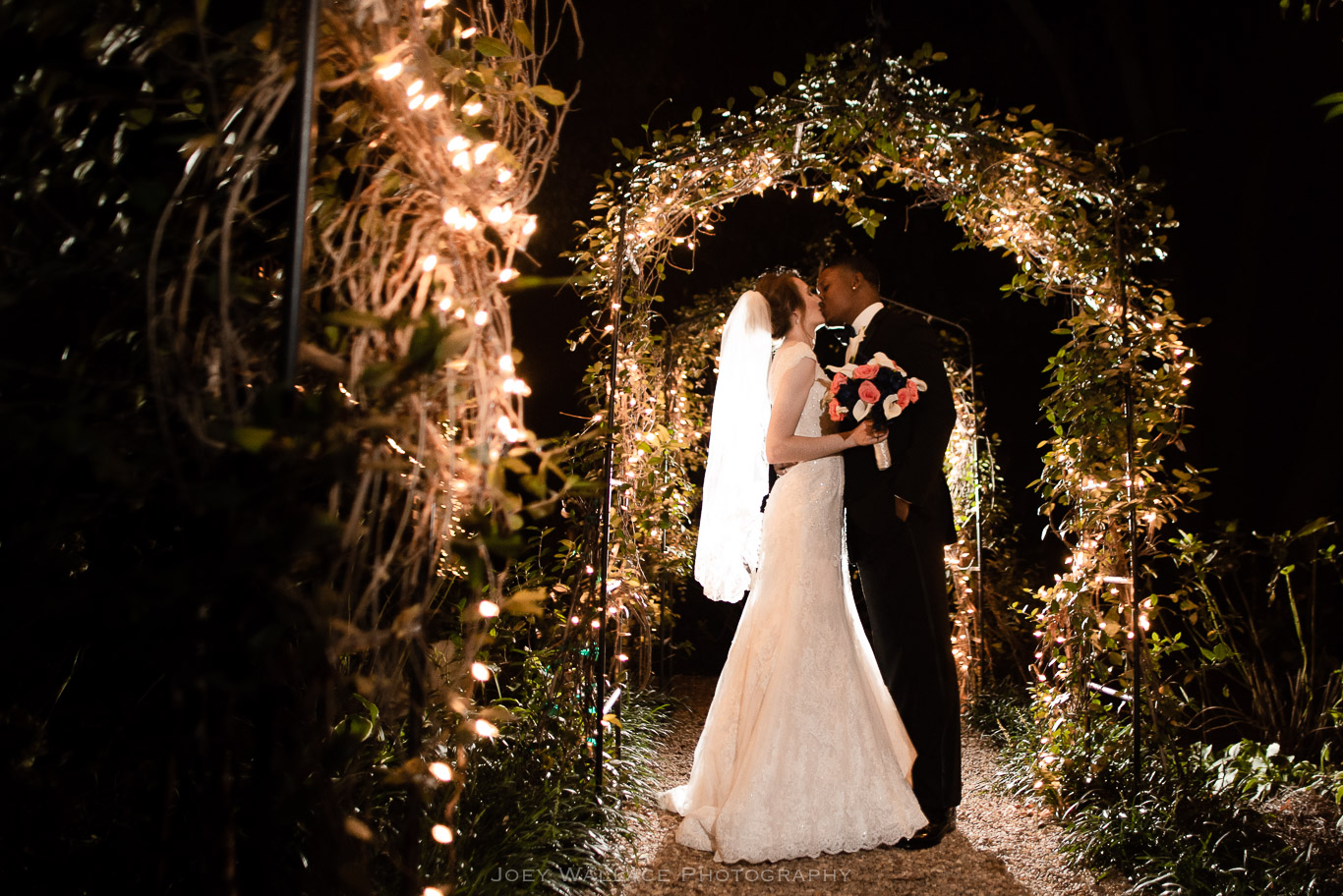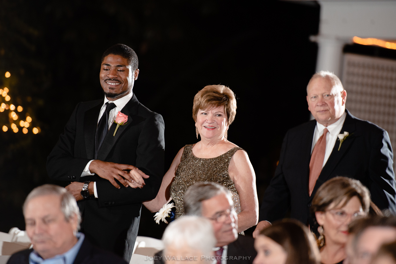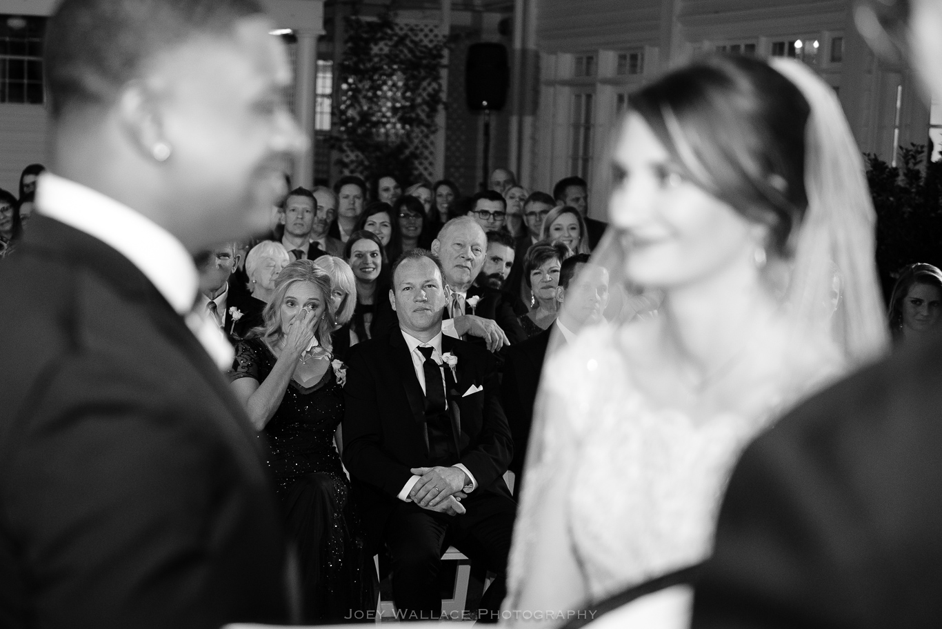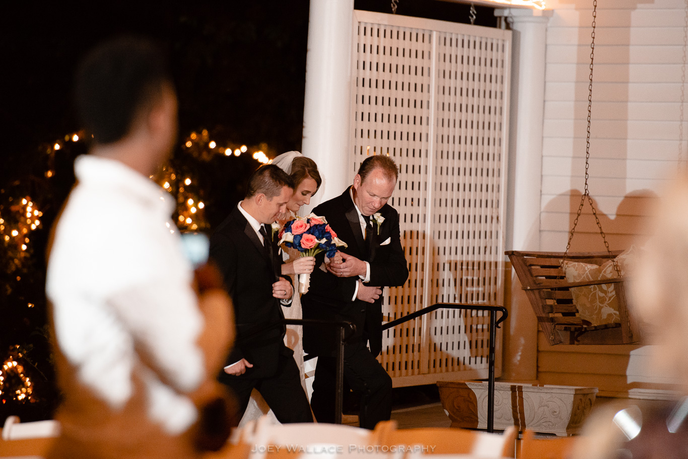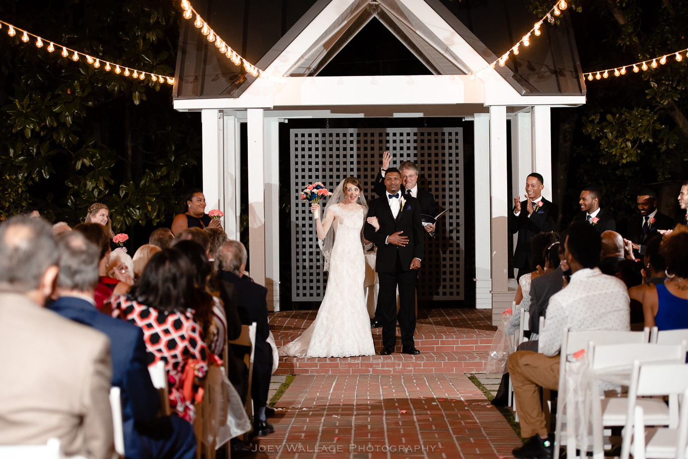 The couple arrived at the vintage house late in the afternoon, shortly after that they began to get ready for their night ceremony at the Flint Hill. The bridal party shared laughter, drinks, and chicken nuggets before they got into their formal dresses and were ushered down the aisle as our Atlanta Wedding Photographers were prepared to flawlessly capture the interracial wedding, despite the venue’s intimate dark setting, thanks to our advanced wireless lighting system.