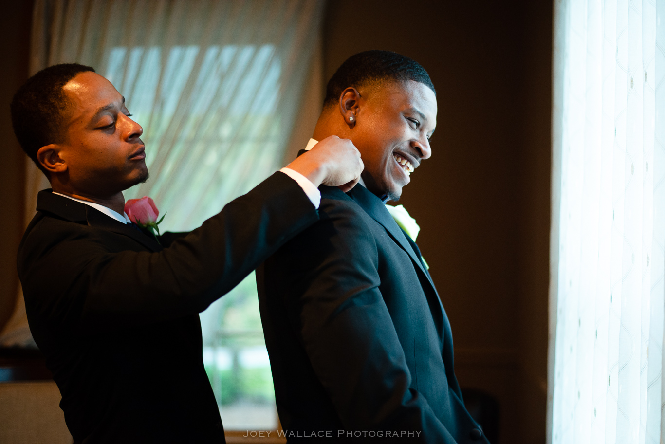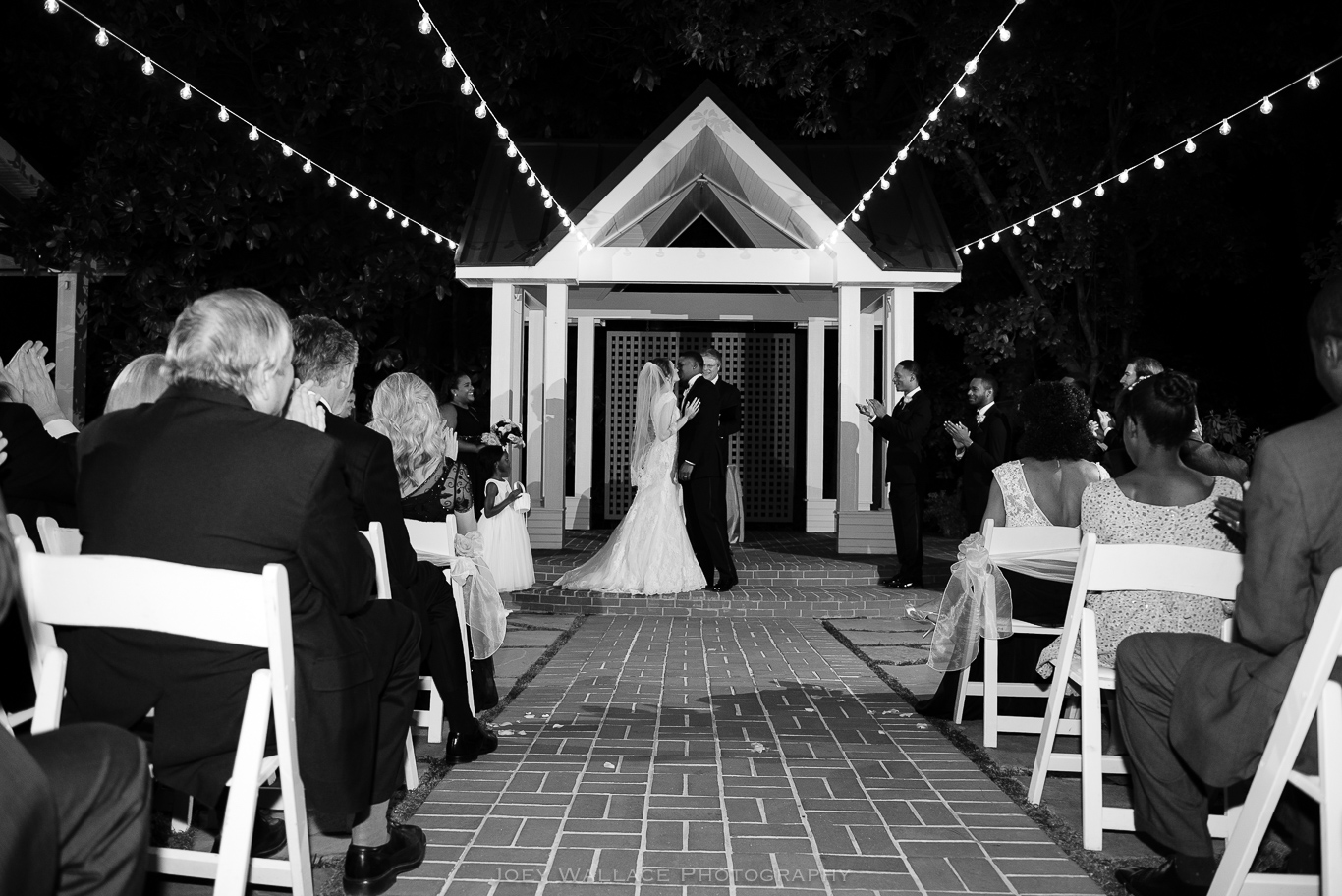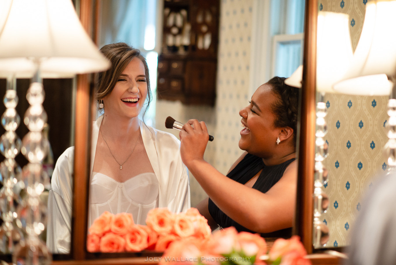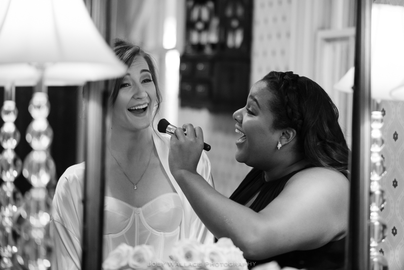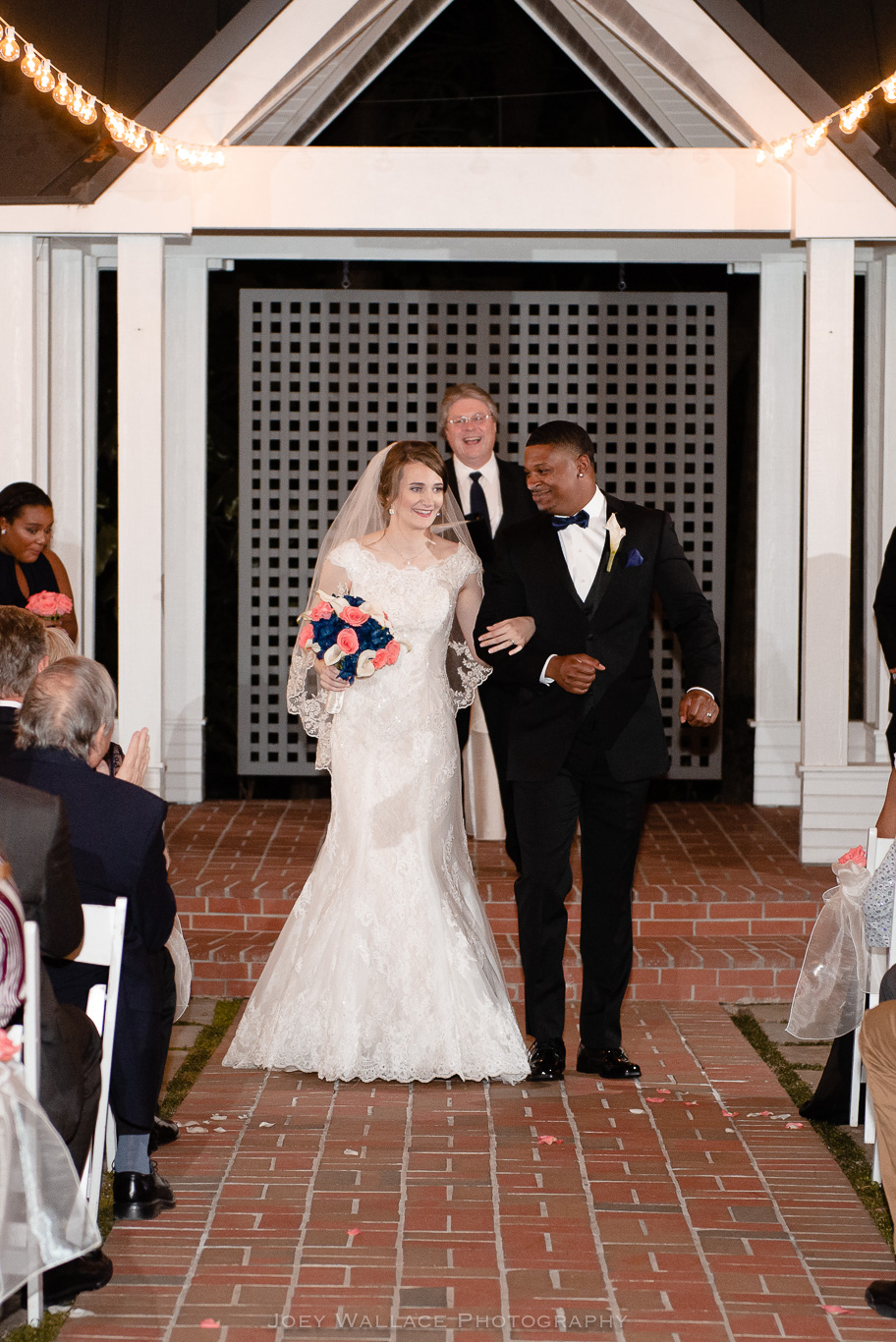 The couple arrived at the vintage house late in the afternoon, shortly after that they began to get ready for their night ceremony at the Flint Hill. The bridal party shared laughter, drinks, and chicken nuggets before they got into their formal dresses and were ushered down the aisle as our Atlanta Wedding Photographers were prepared to flawlessly capture the interracial wedding, despite the venue’s intimate dark setting, thanks to our advanced wireless lighting system.